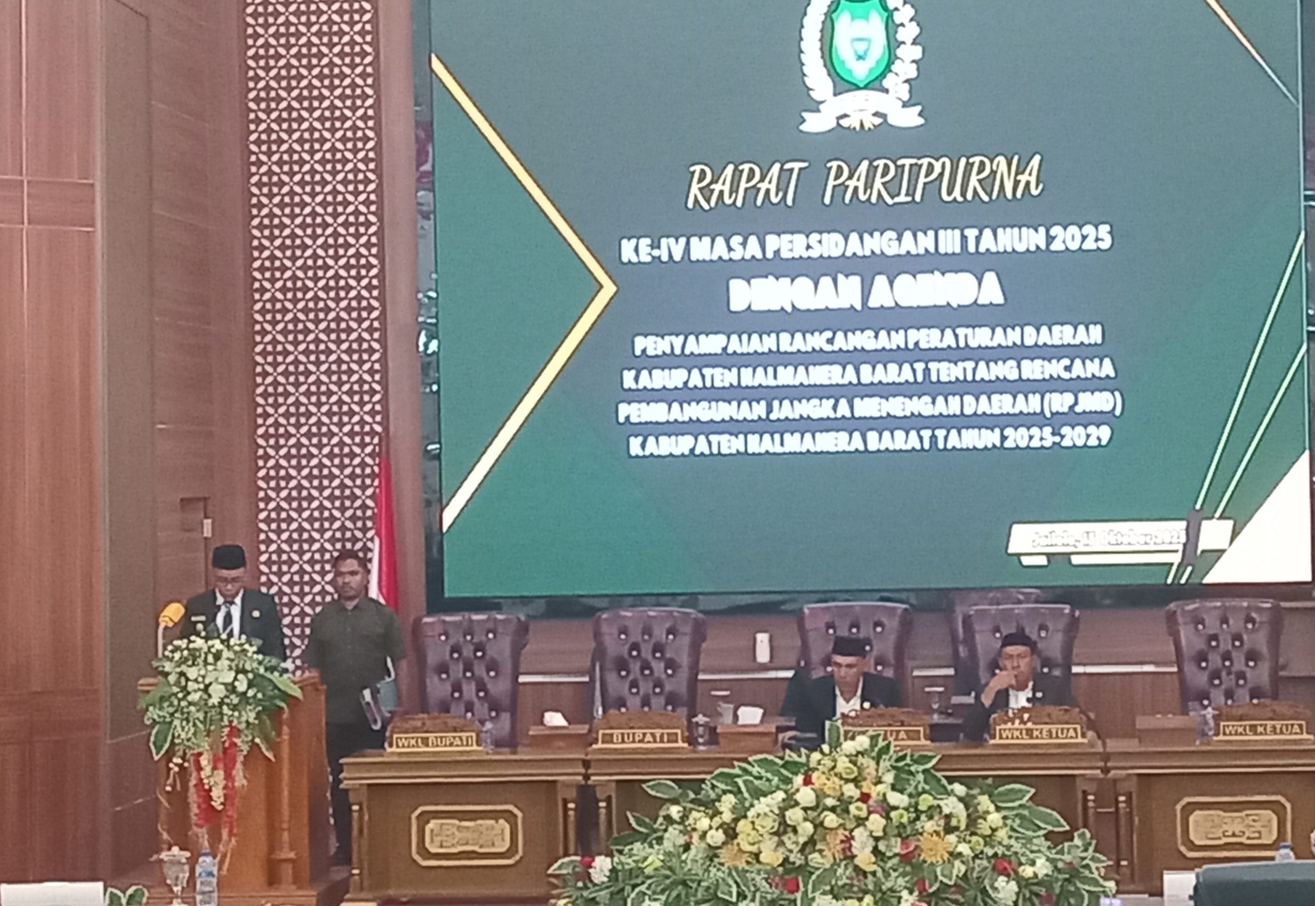 HALMAHERA BARAT – Dewan Perwakilan Rakyat Daerah (DPRD) Kabupaten Halmahera Barat (Halbar) memulai pembahasan dokumen perencanaan pembangunan lima tahun ke depan. Hal ini ditandai dengan dibukanya Rapat Paripurna Ke-IV Masa Persidangan III Tahun 2025 dengan agenda Penyampaian Rancangan Peraturan Daerah (Ranperda) tentang Rencana Pembangunan Jangka Menengah Daerah (RPJMD) Kabupaten Halmahera Barat Tahun 2025-2029. Rabu (15/10/2025) di Kantor DPRD Halbar.