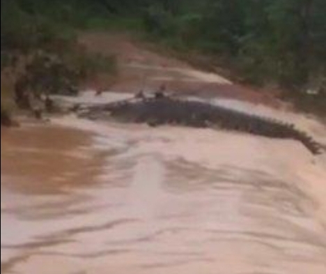 Hujan deras yang terjadi beberapa hari terakhir memang telah menyebabkan sejumlah kerusakan di wilayah Bulang. Selain kandang penangkaran buaya, beberapa titik jalan juga dilaporkan tergenang banjir yang cukup tinggi.