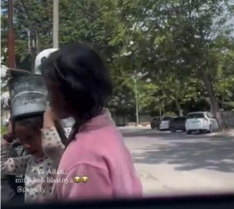 Dalam rekaman video yang beredar, sang ibu tampak menurunkan dua anak perempuannya, kemudian pergi dengan sepeda motor, meninggalkan mereka begitu saja. Kedua anak tersebut tampak meminta-minta kepada pengendara dan pengunjung yang melintas di lokasi tersebut.