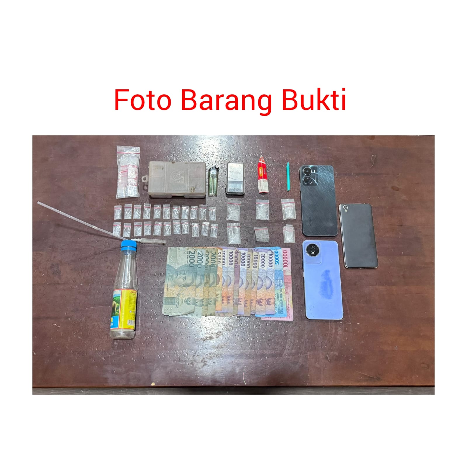 “Untuk modus penjualan sabu ini pelaku membuat kotak pos dan pembeli memasukkan uang kedalam kotak dan pelaku langsung memberikan barang narkoba melalui celah lubang yang sudah disiapkan,” terang Kanit.