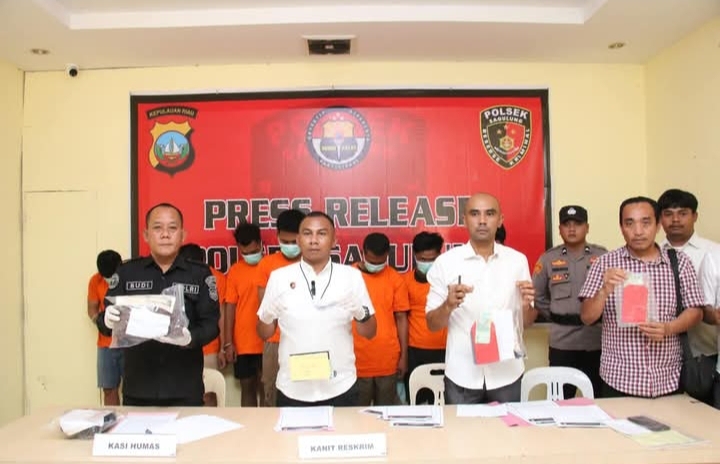 Batam | Polsek Sagulung Menggelar Konferensi Pers pengungkapan jaringan pencurian kendaraan bermotor (curanmor) yang beraksi di beberapa lokasi di Kota Batam. Dalam operasi yang dilakukan oleh Tim Opsnal Reskrim, polisi berhasil menangkap lima pelaku dalam kasus terpisah, sementara beberapa pelaku lainnya masih dalam pengejaran. Senin (03/02/2025).