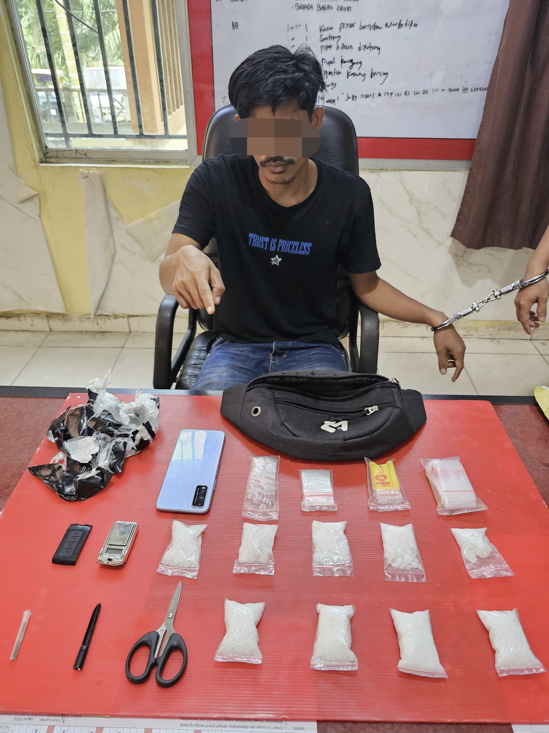 Adapun barang bukti yang berhasil dalam penangkapan AC alias Icon 9 (sembilan) buah Plastik klip bening berisikan Narkotika jenis Shabu, 1 (satu) unit handphone merk VIVO warna Biru, 7 (tujuh) buah lakban pembungkus hitam, 1 (satu) buah pipet sendok, 4 (empat) bal Plastik Bening Kosong, 1 (satu) buah gunting, 1 (satu) buah timbangan digital serta1 (satu) buah tas sandang hitam.