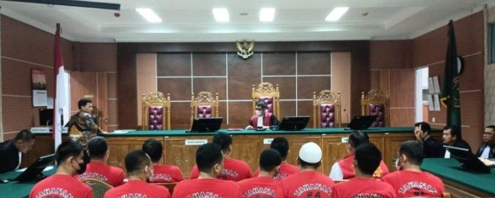 Anggota keluarga terdakwa hadir memenuhi ruangan. Sementara sebagian tampak gelisah menanti jalannya persidangan.